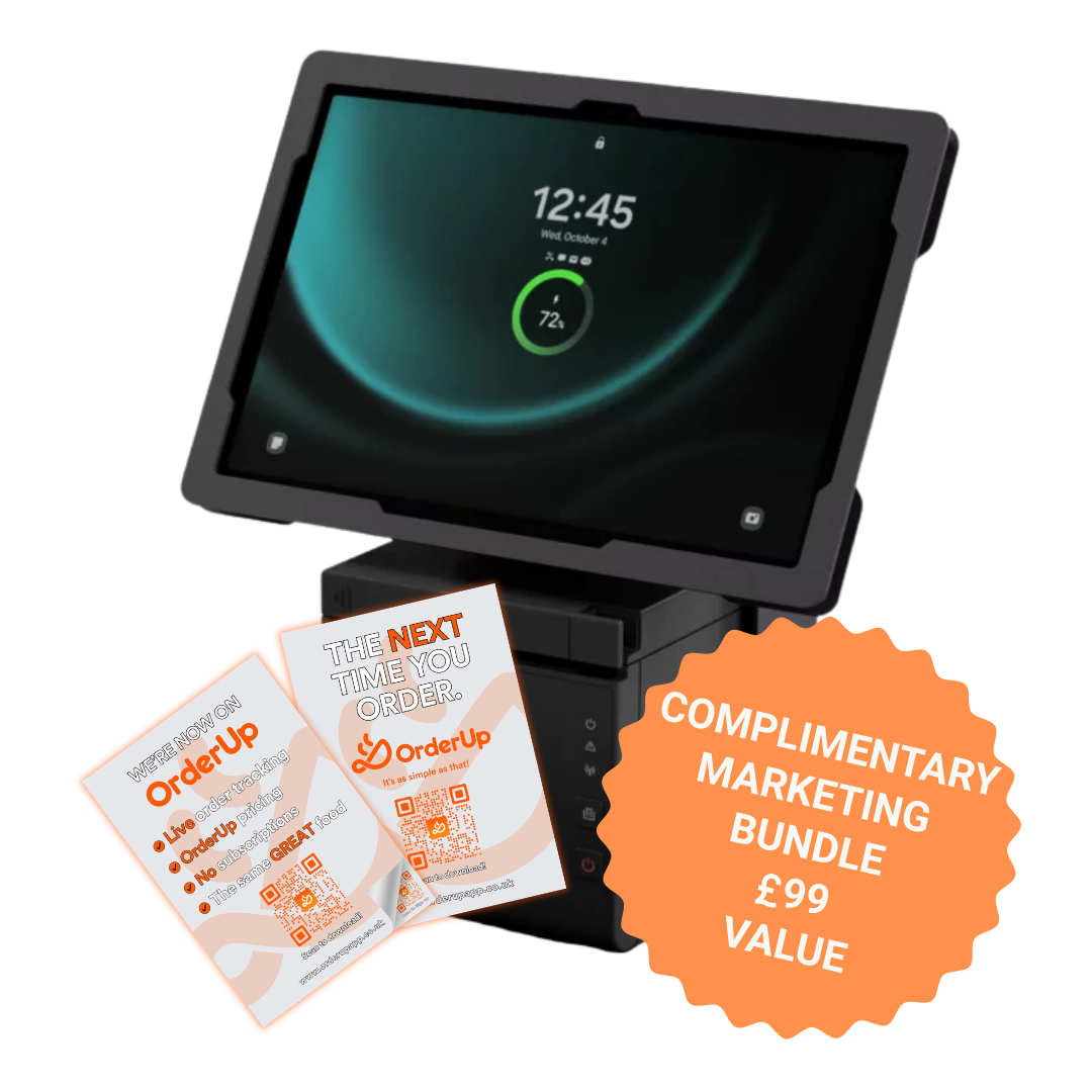 Tablet, printer, stand, and marketing, all in one package, fully synced with the OrderUp system. £639